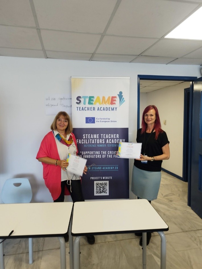 На последния международен семинар по проекта STEAME ACADEMY в гр. Атина в периода 7-11 октомври 2025 г. участваха над 40 учители от различни европейски страни. Консорциумът на проекта оцени резултатите от работата на създадената Европейска Федерация на STEAME TEACHER ACADEMY и планира следващите стъпки по стартирането на регионалните STEAME TEACHER ACADEMY в отделните европейски страни.