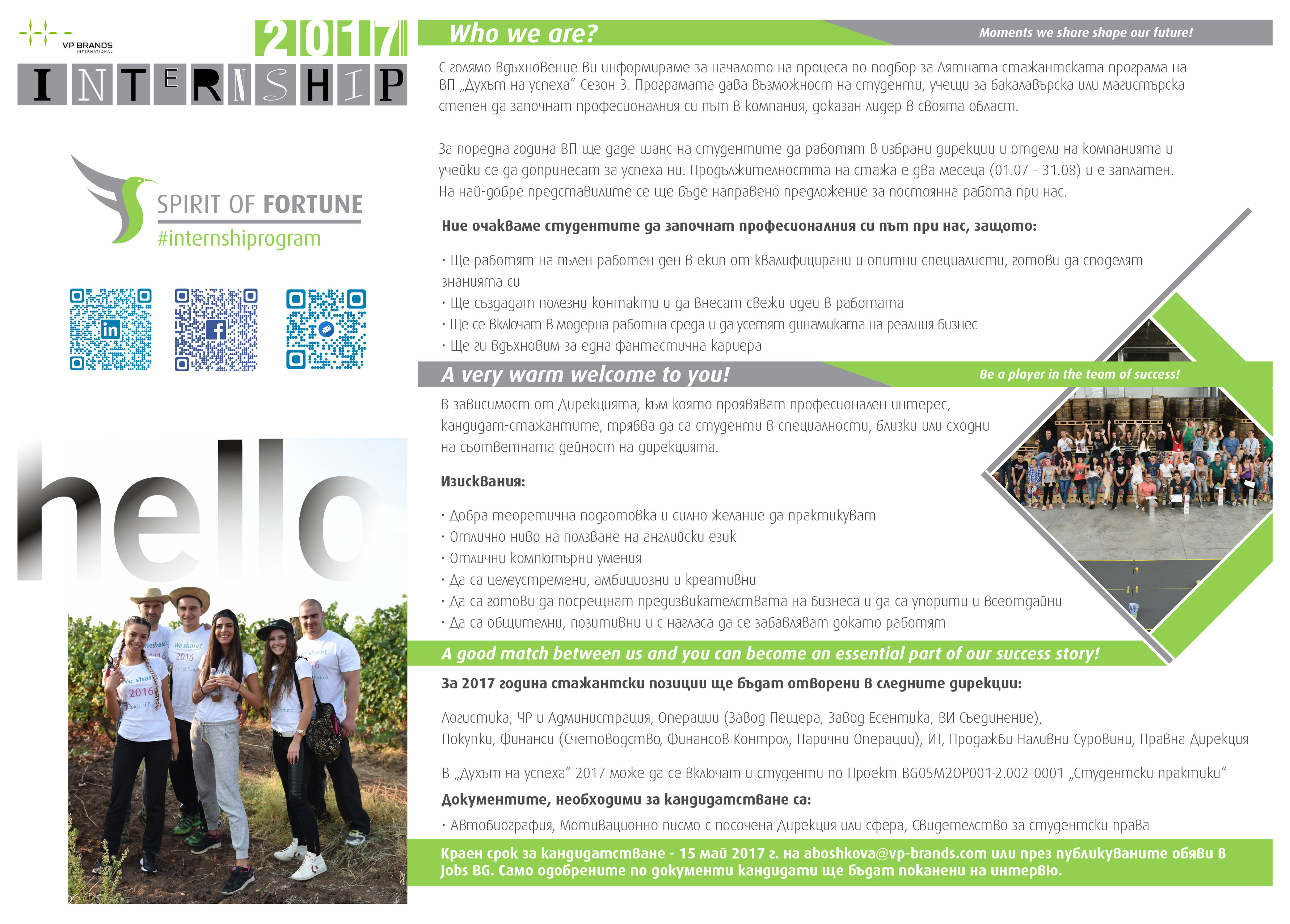 - Студентски практики по проект BG05SFPR001-3.002-0001 "От висше образование към заетост"